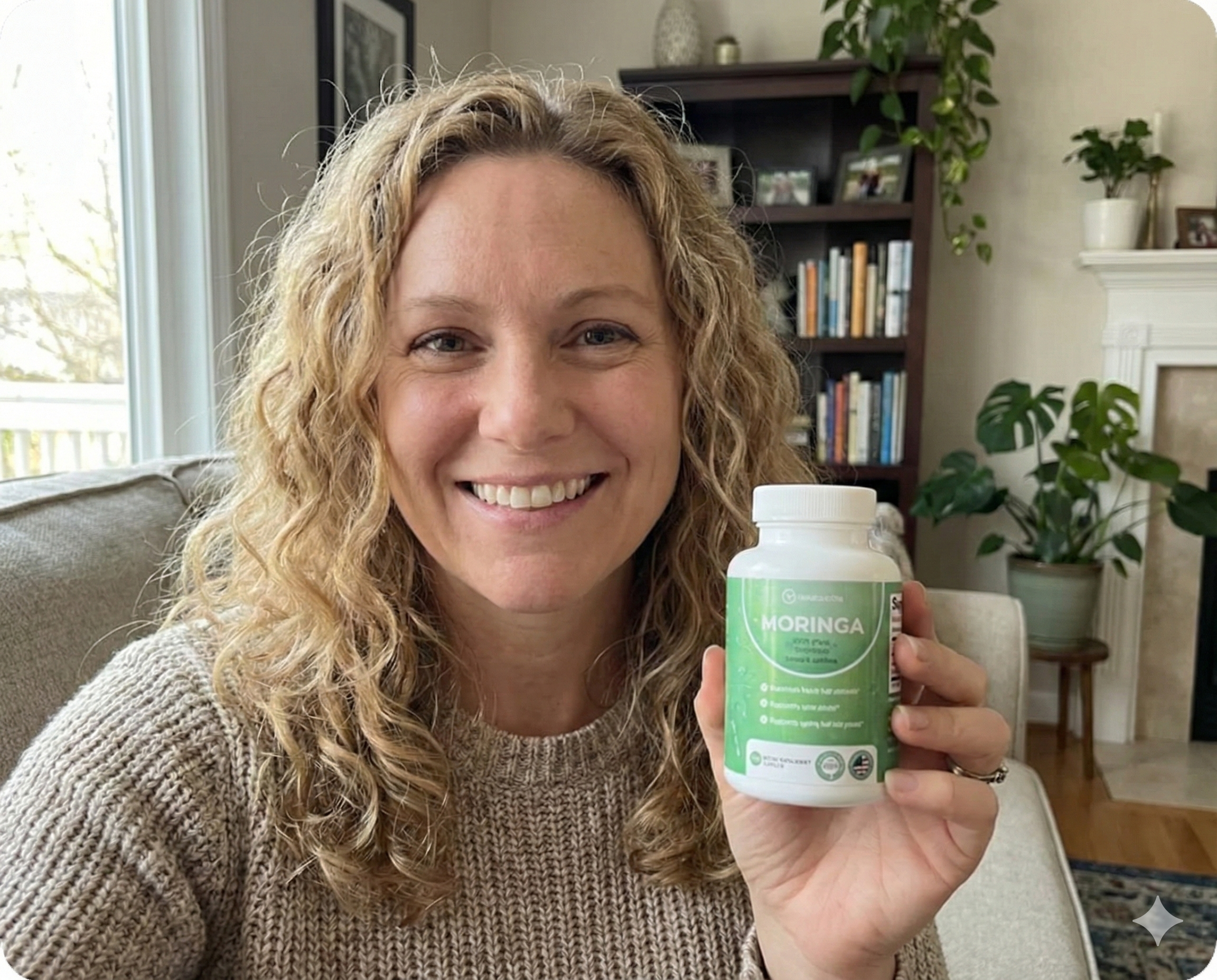 Every two-capsule serving delivers 800mg of pure Moringa Oleifera powder. This superfood is packed with 27 vitamins (like A, C, and the full B-complex), 9 amino acids, and 46 antioxidants, plus essential minerals like calcium, iron, and potassium.